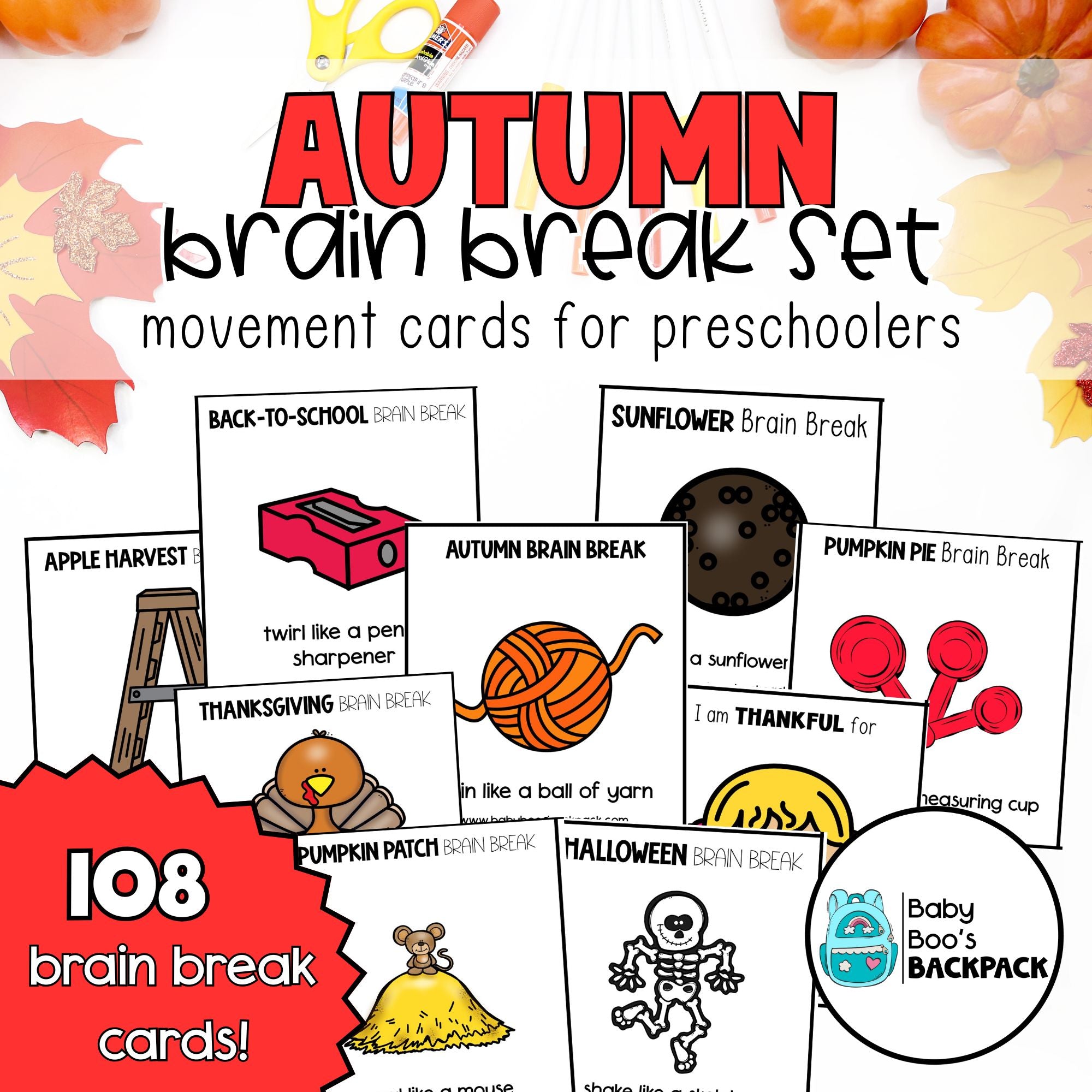 Autumn Brain Break Cards | Fall Gross Motor Movement Cards | Self-Regulation