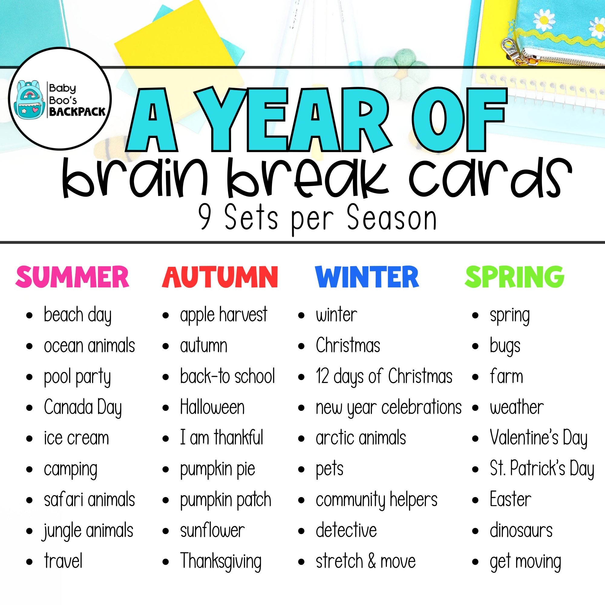 The Ultimate Brain Break Card Bundle | A Year of Gross Motor Movement Cards!