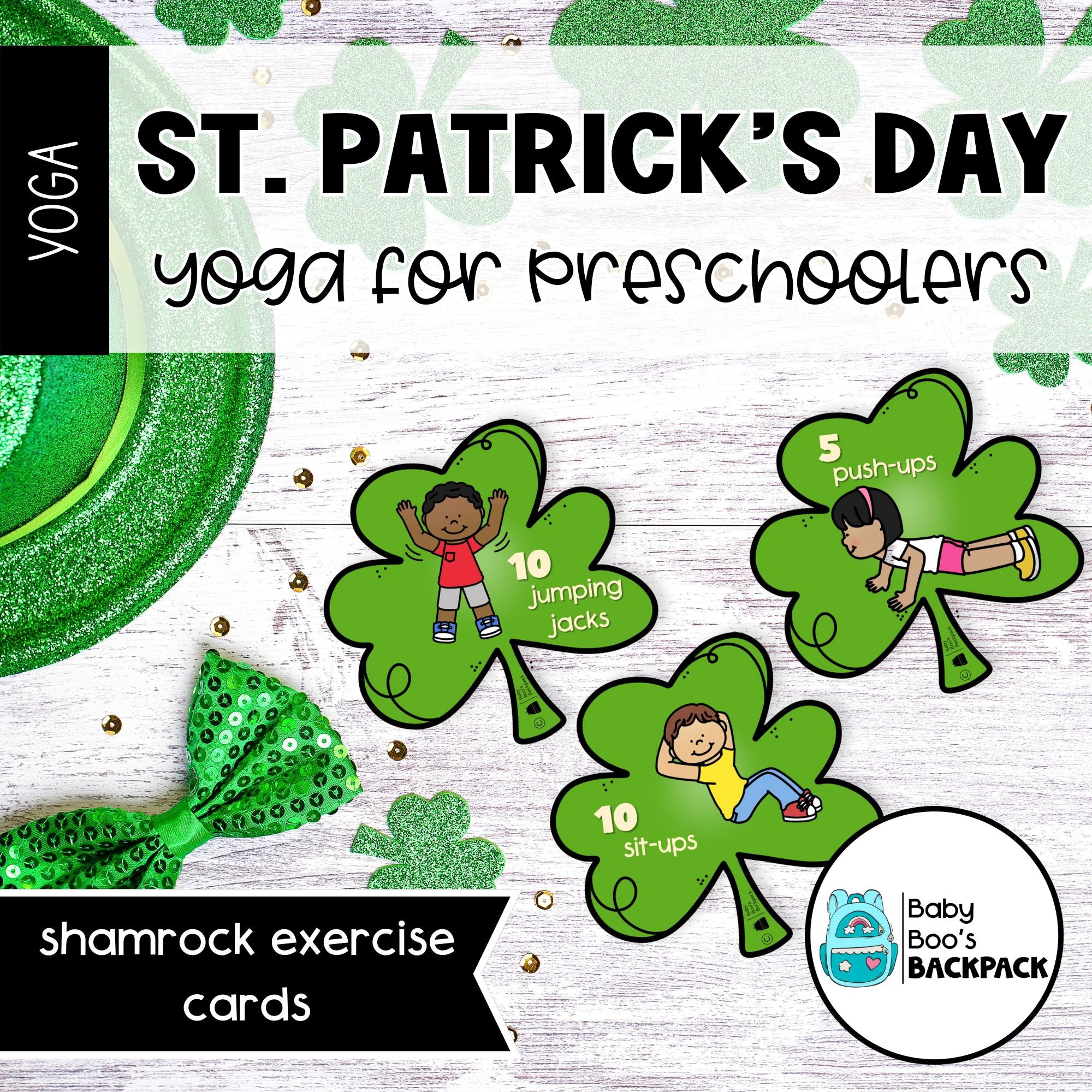 -24 Shamrock Yoga Story Cards with Picture Cues (color)