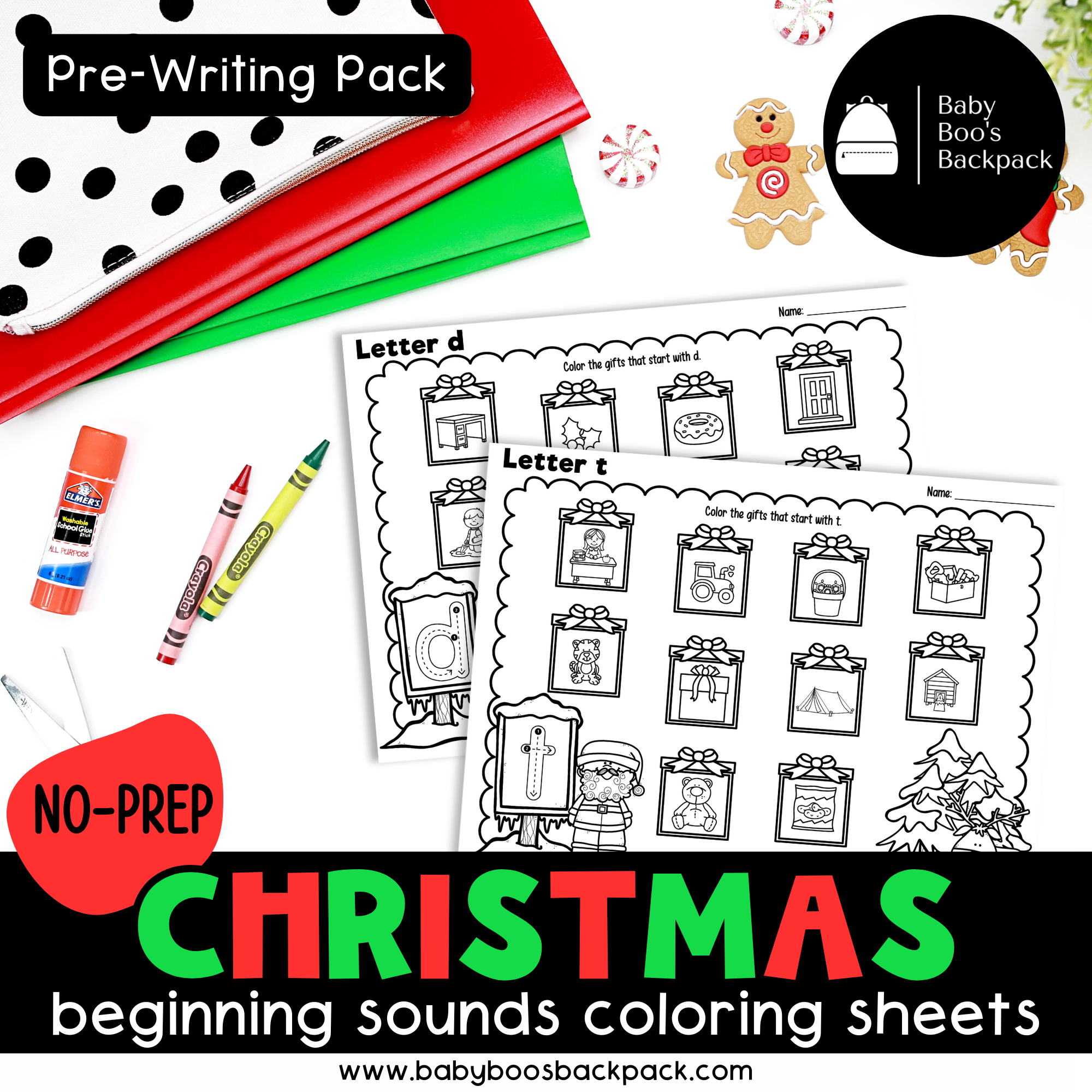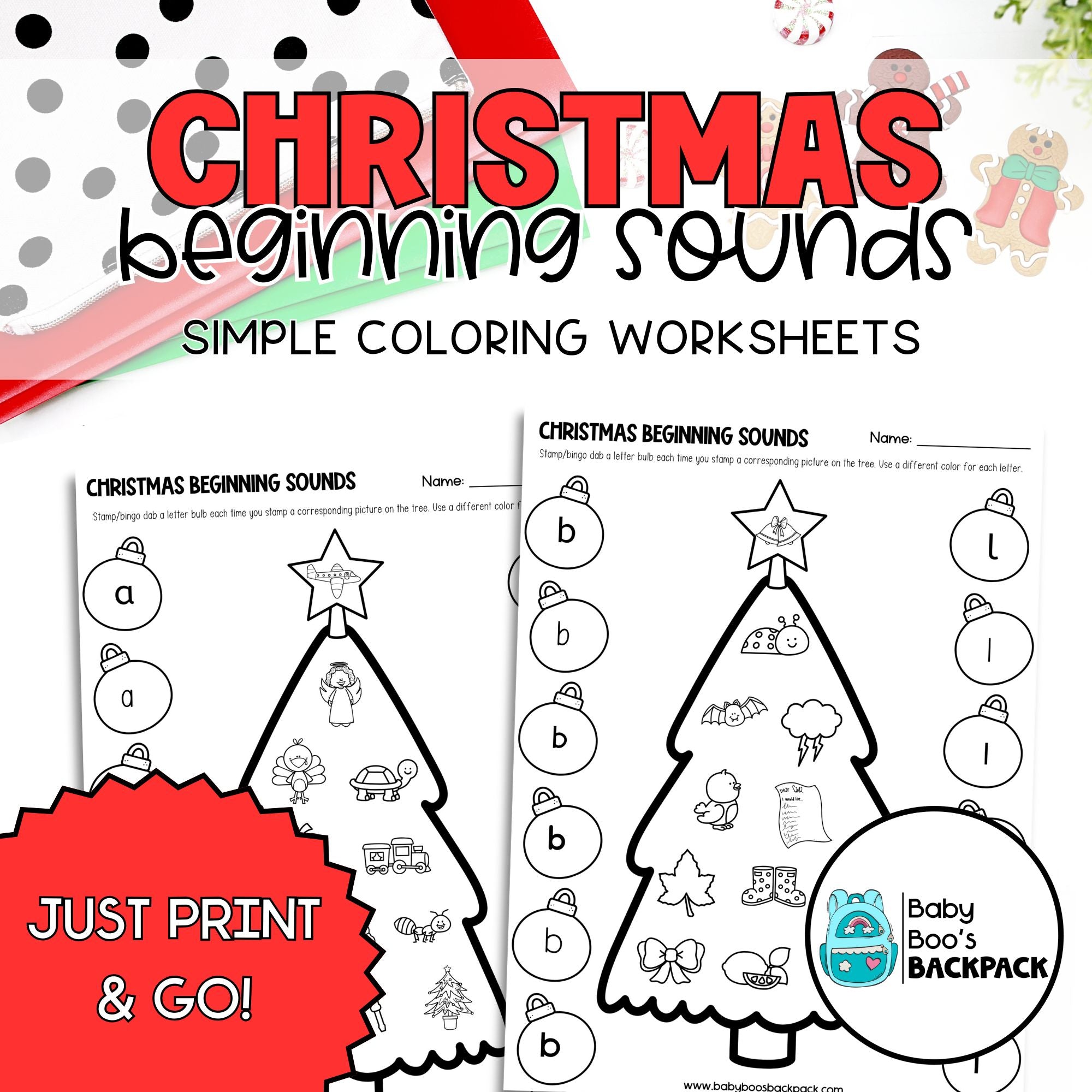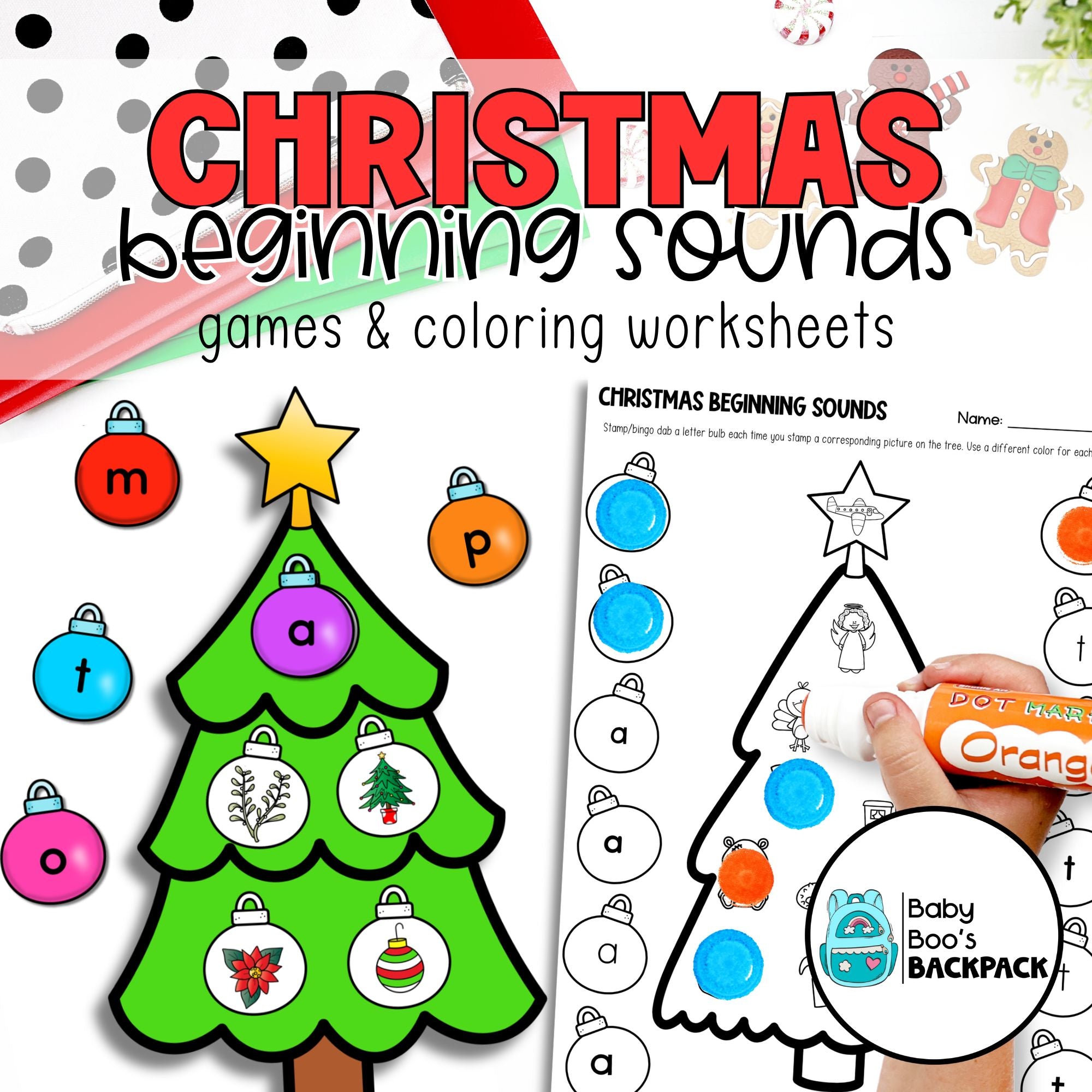 Christmas Beginning Sounds Game & Coloring Worksheets | Letter Recognition