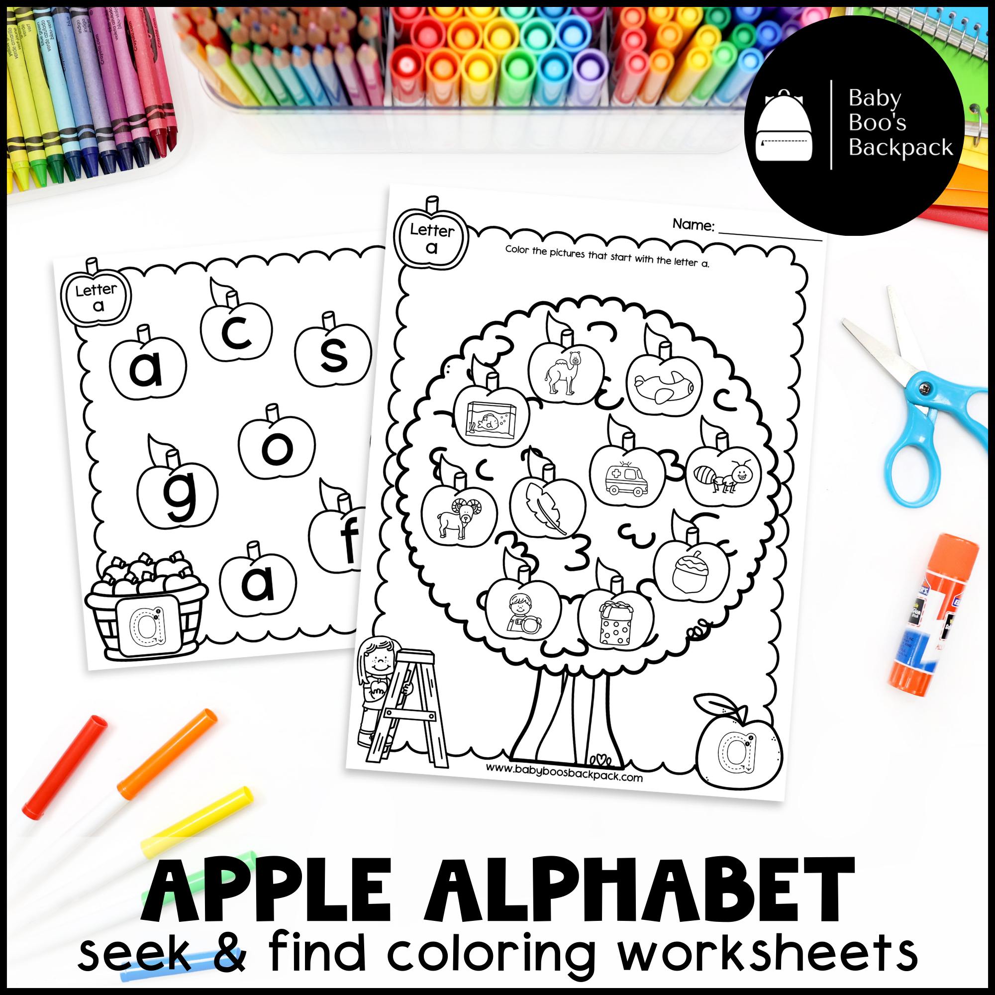 Apple Lowercase Alphabet Trace & Color Worksheets