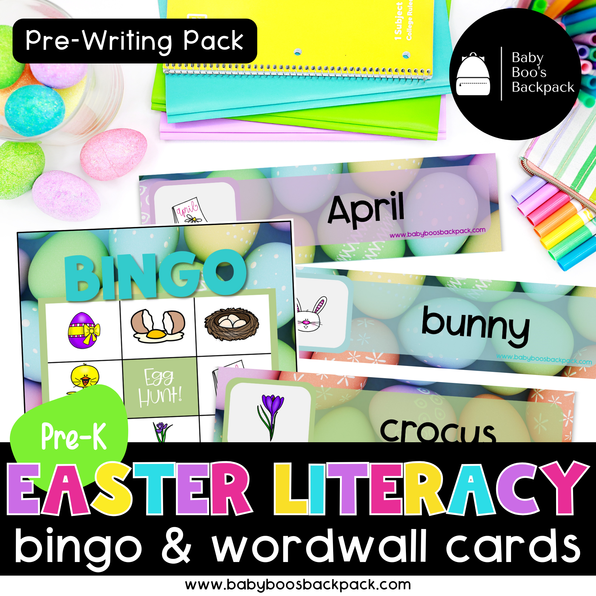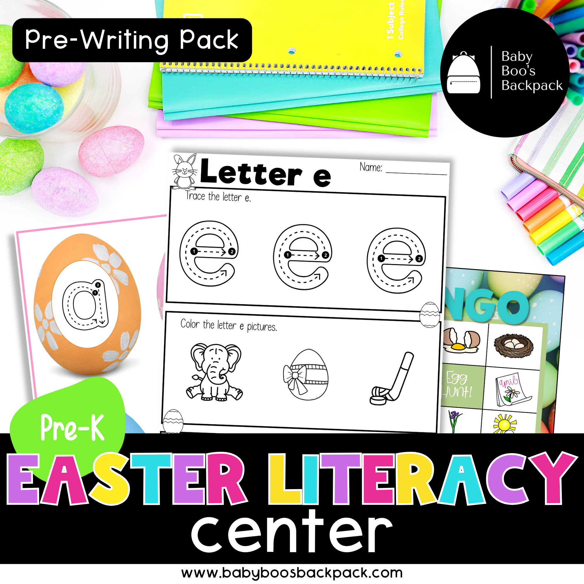 Pre-K Easter Literacy Set: Games, Coloring Worksheets & Story Prompts