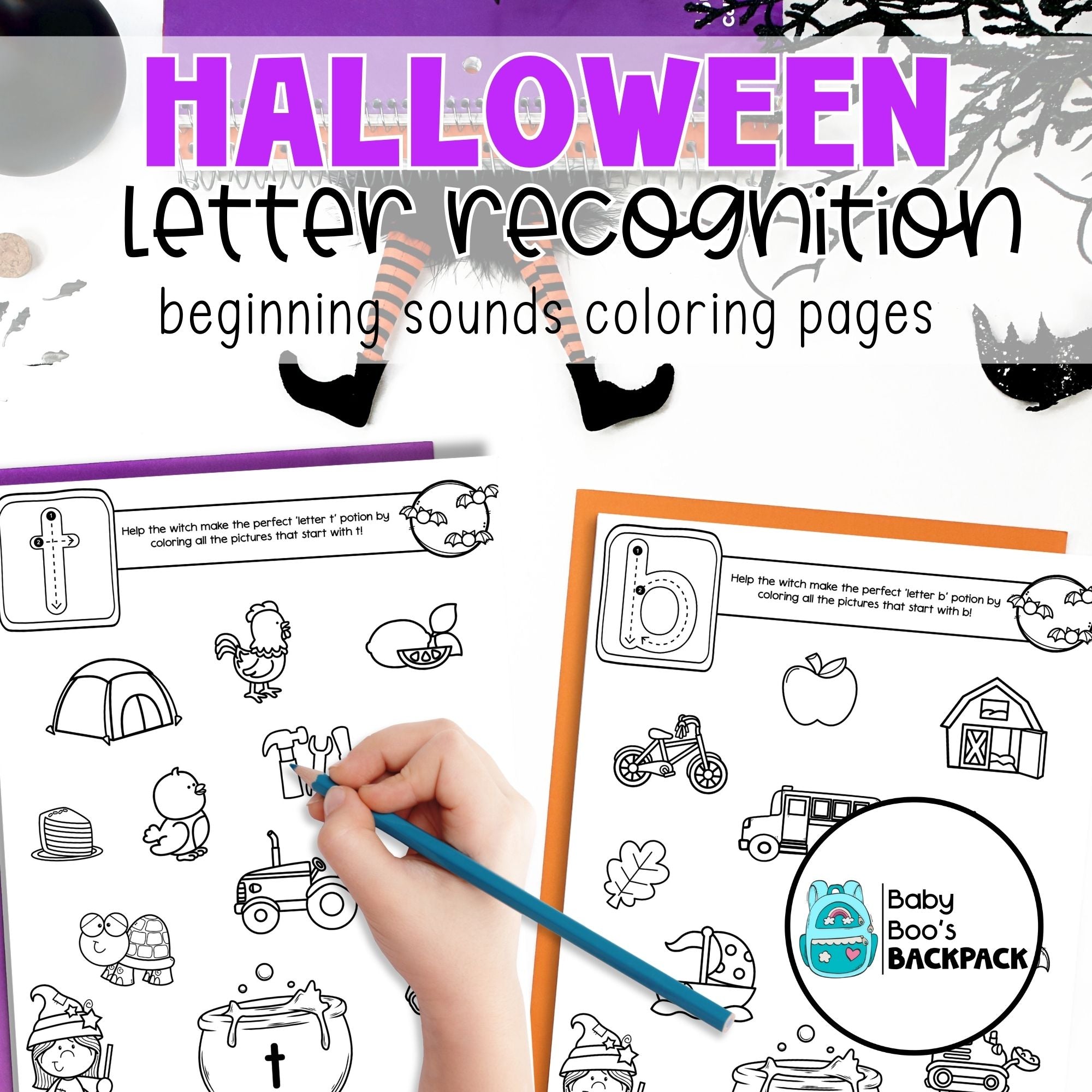 Halloween Letter Recognition Worksheets & Beginning Sounds Matching Game