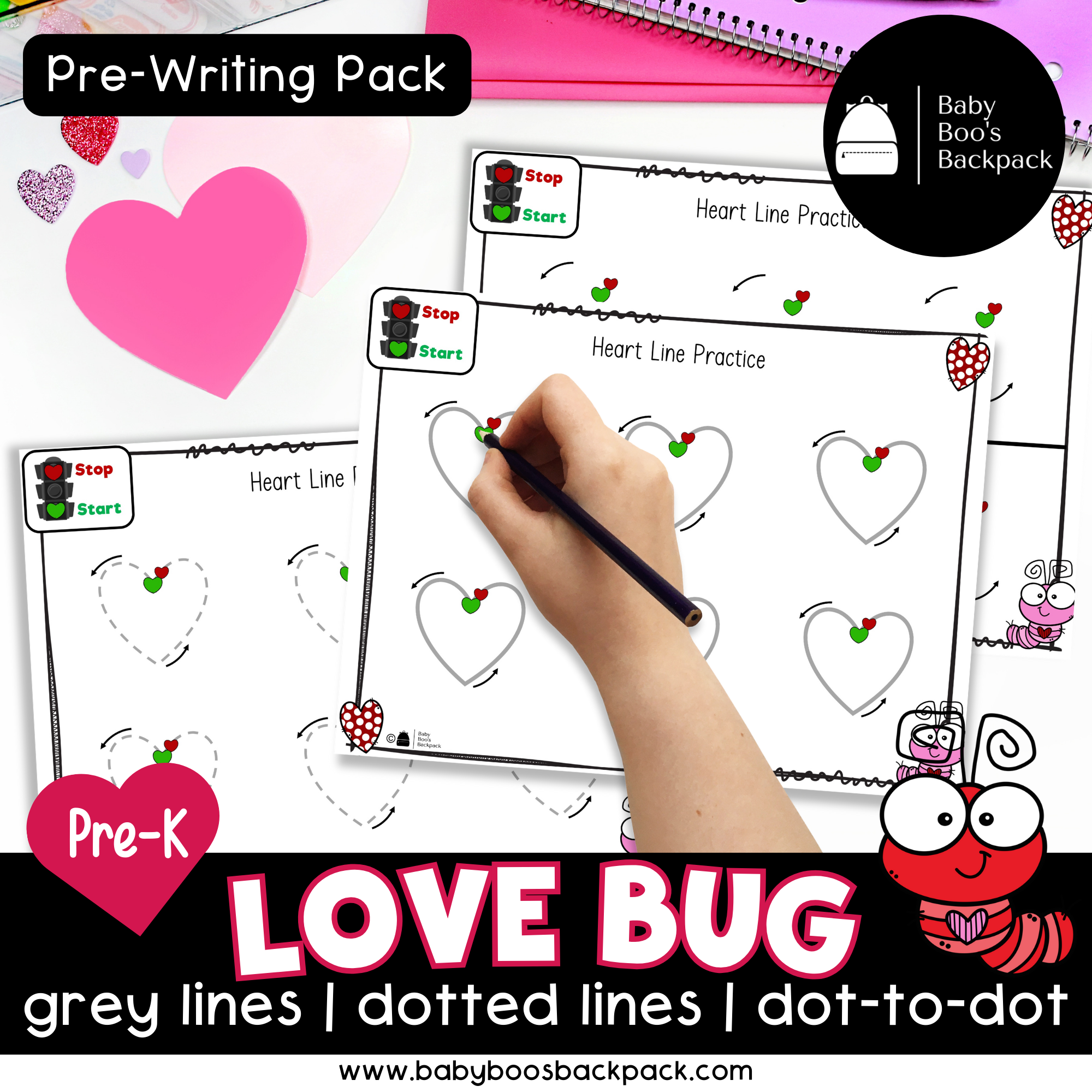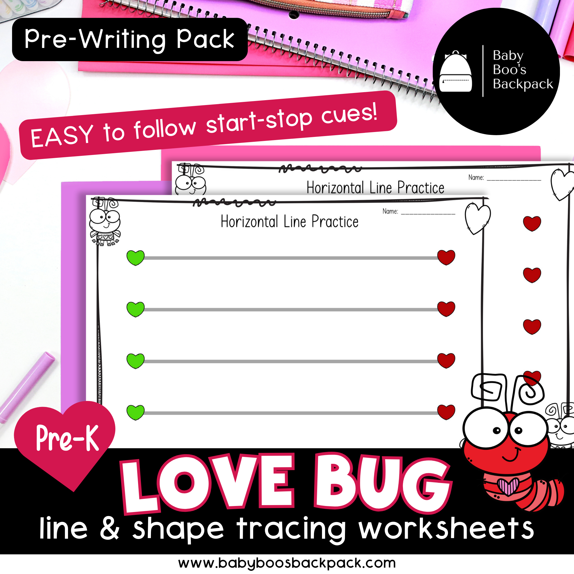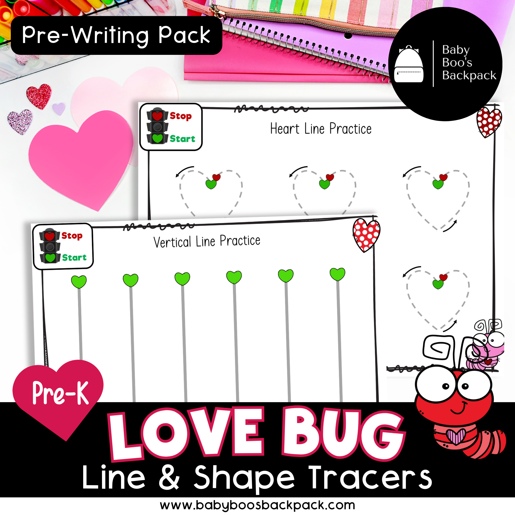 Pre-K Valentine's Day Line & Shape Tracers | Love Bug Tracing Worksheets