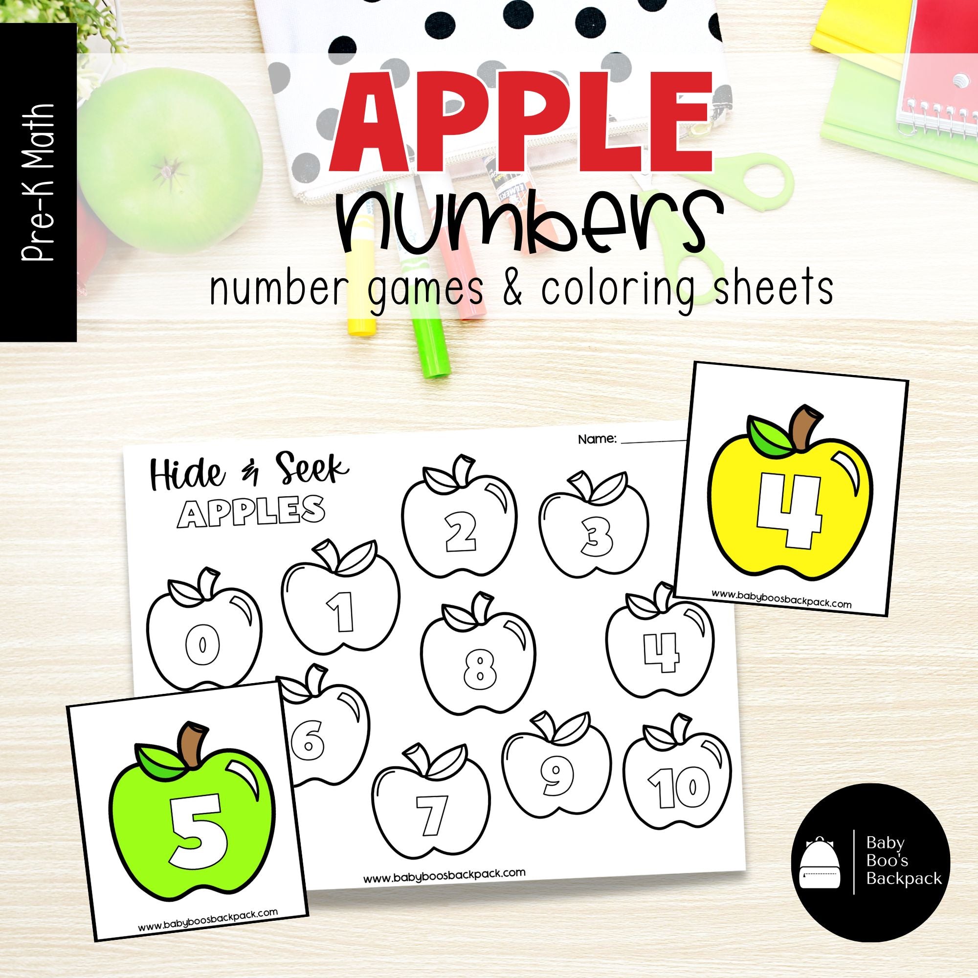 Apple Number Tracing Cards, Counting Mats & Coloring Worksheets