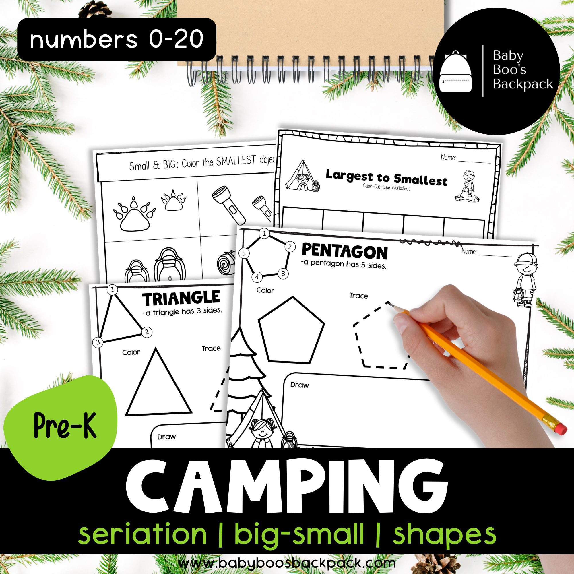 Unleash a camp-inspired learning adventure with our No-Prep Camping Math Worksheets! Explore numbers, shapes, and odd-even concepts with ease, thanks to our pre-K trace and color worksheets.