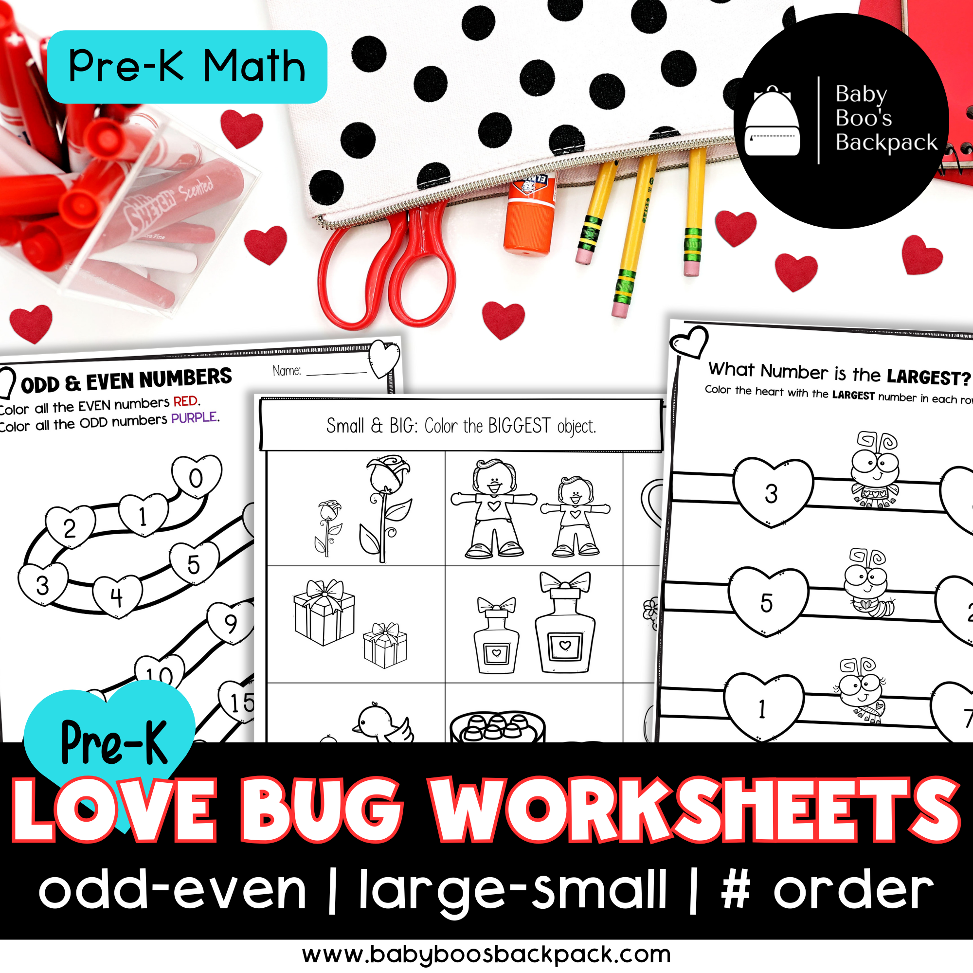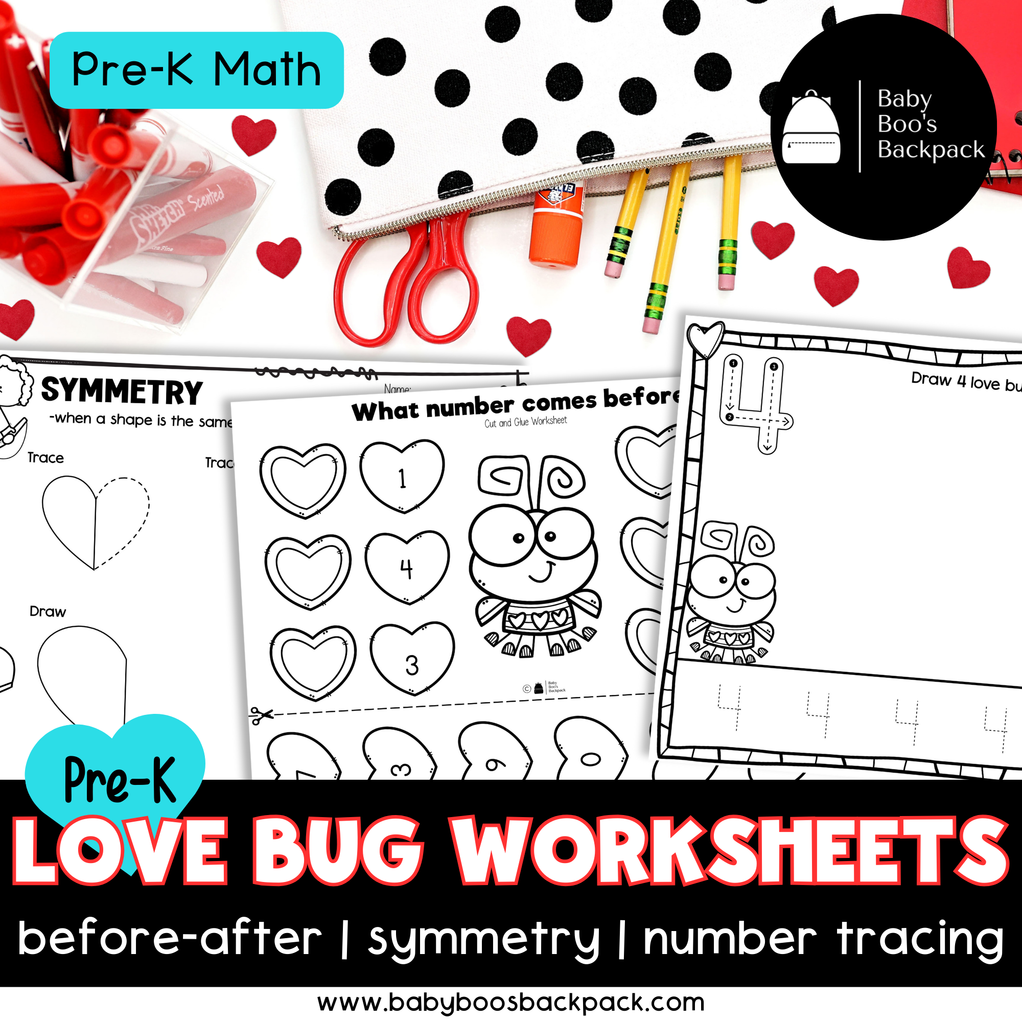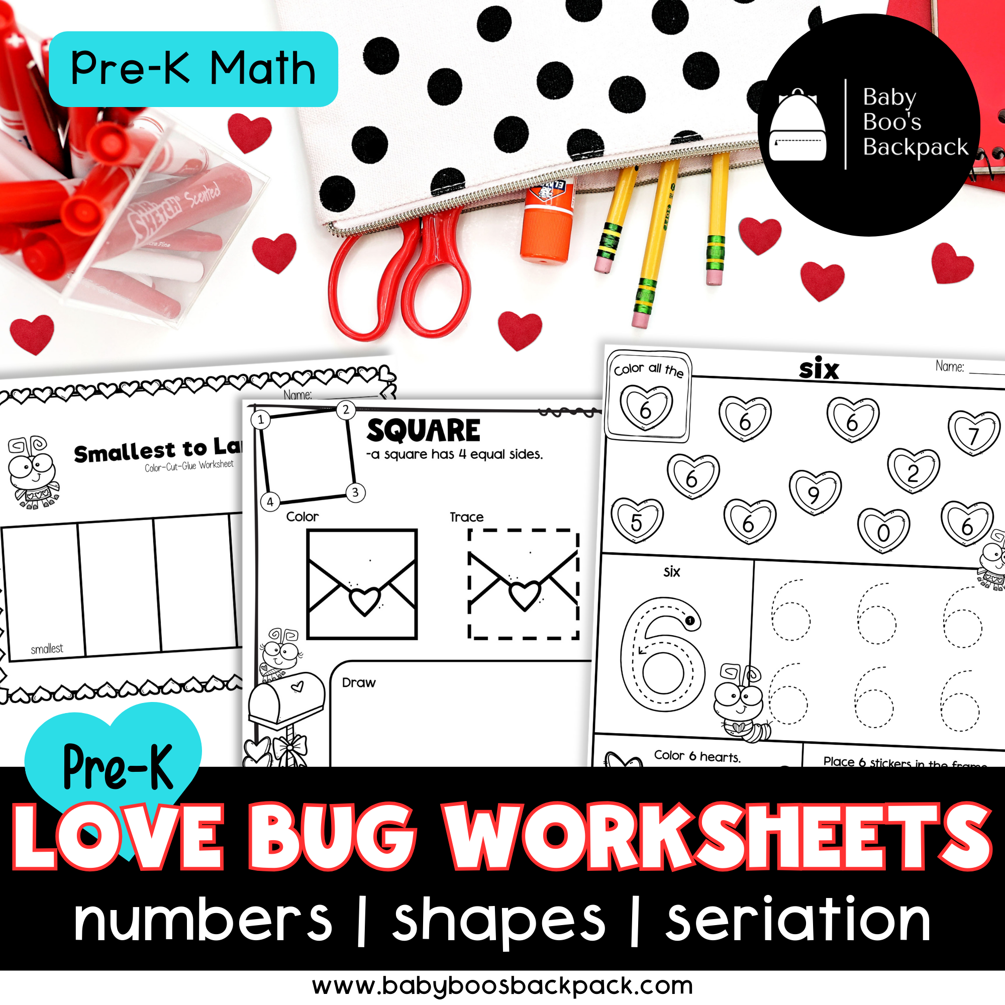 Get your little love bugs buzzing with our No Prep Love Bug Math Worksheets! Designed for preschoolers, these Valentine's Day themed worksheets cover early math concepts, including numbers, shapes, and size concepts. No prep needed, just print and go!