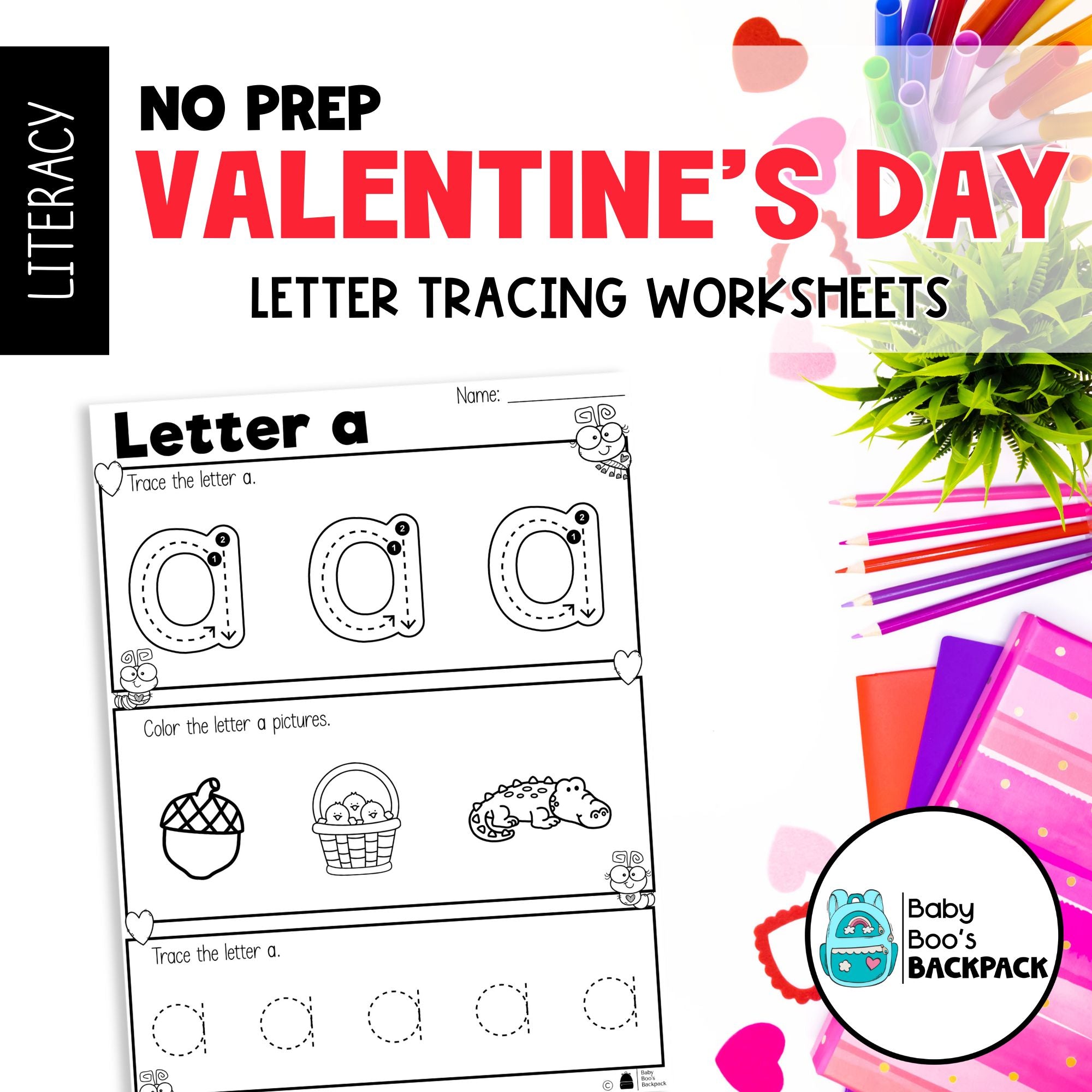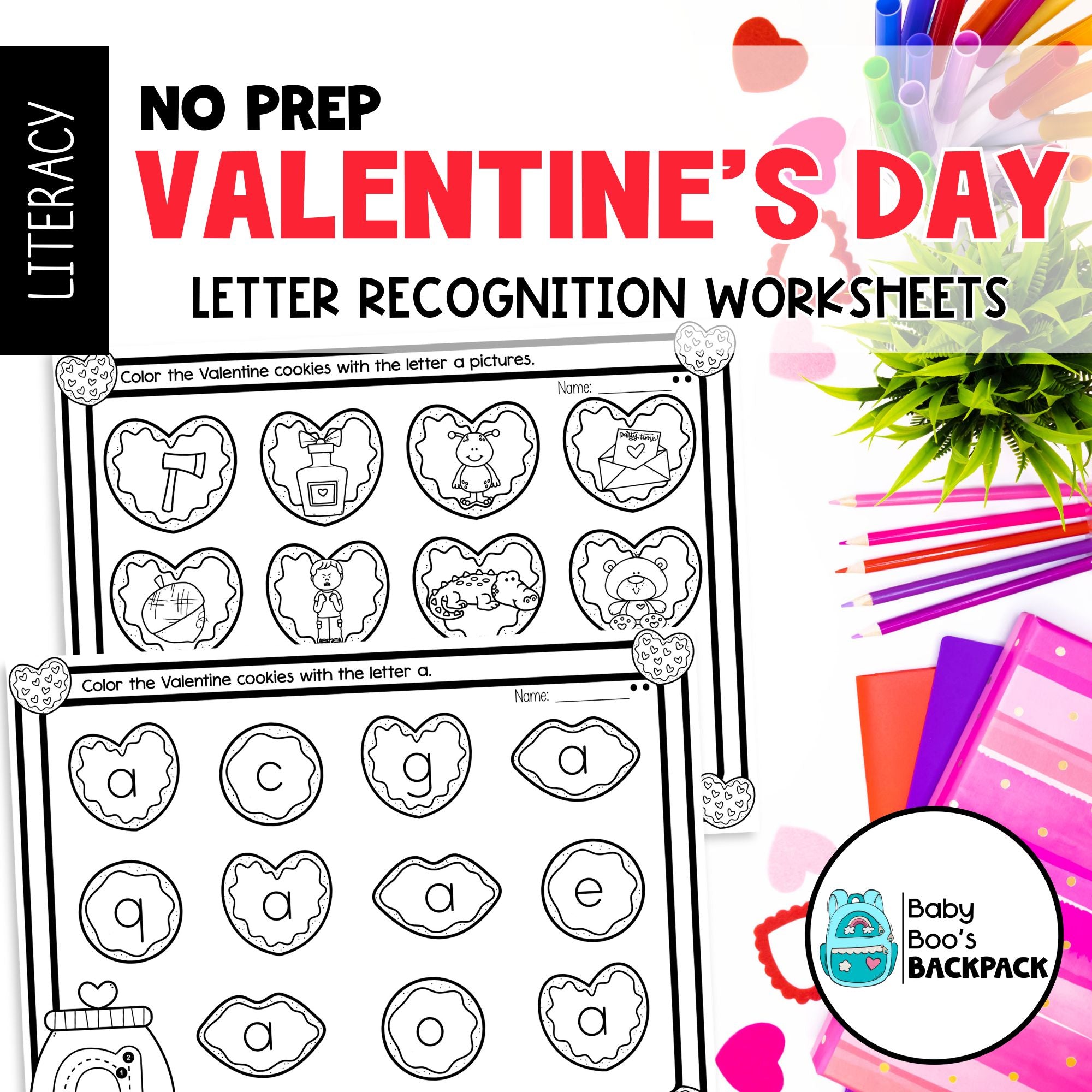 No-Prep Valentine's Day Letter Recognition Worksheets | Beginning Sounds & Letter Tracing