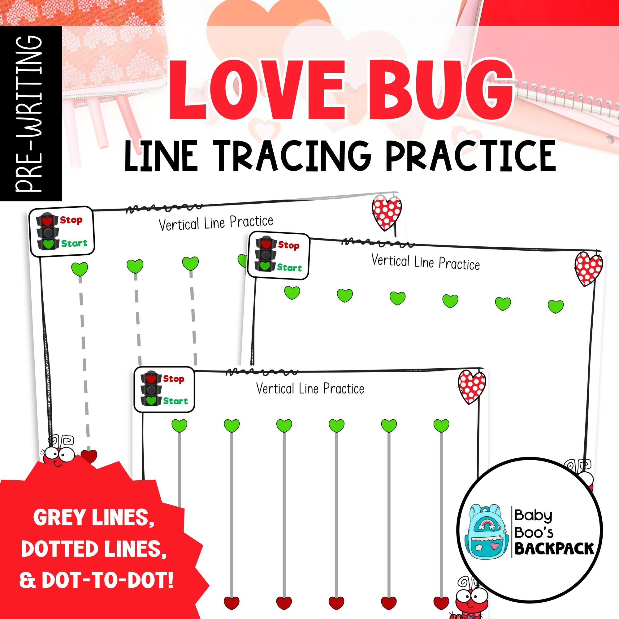 Pre-K Valentine's Day Line & Shape Tracers | Love Bug Tracing Worksheets