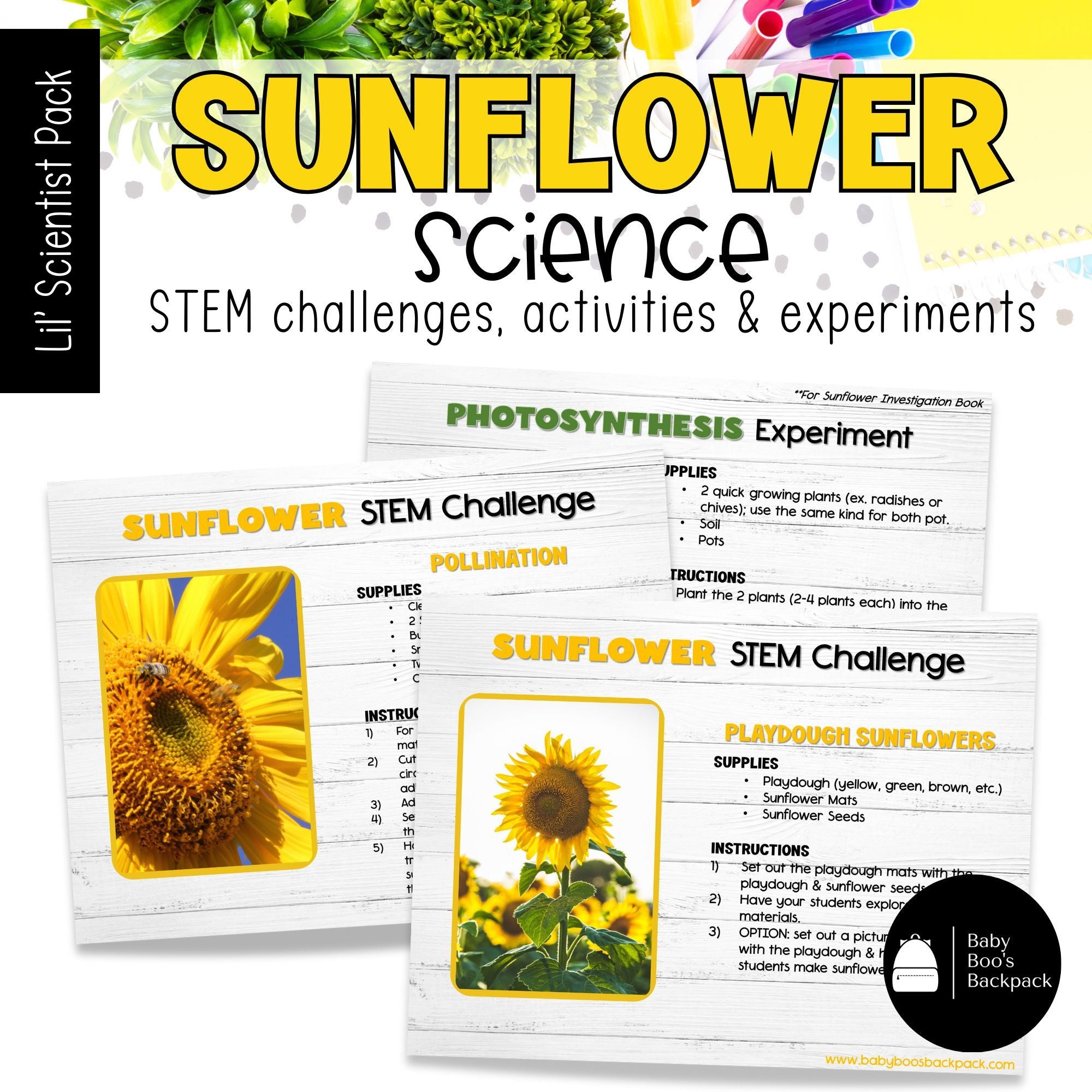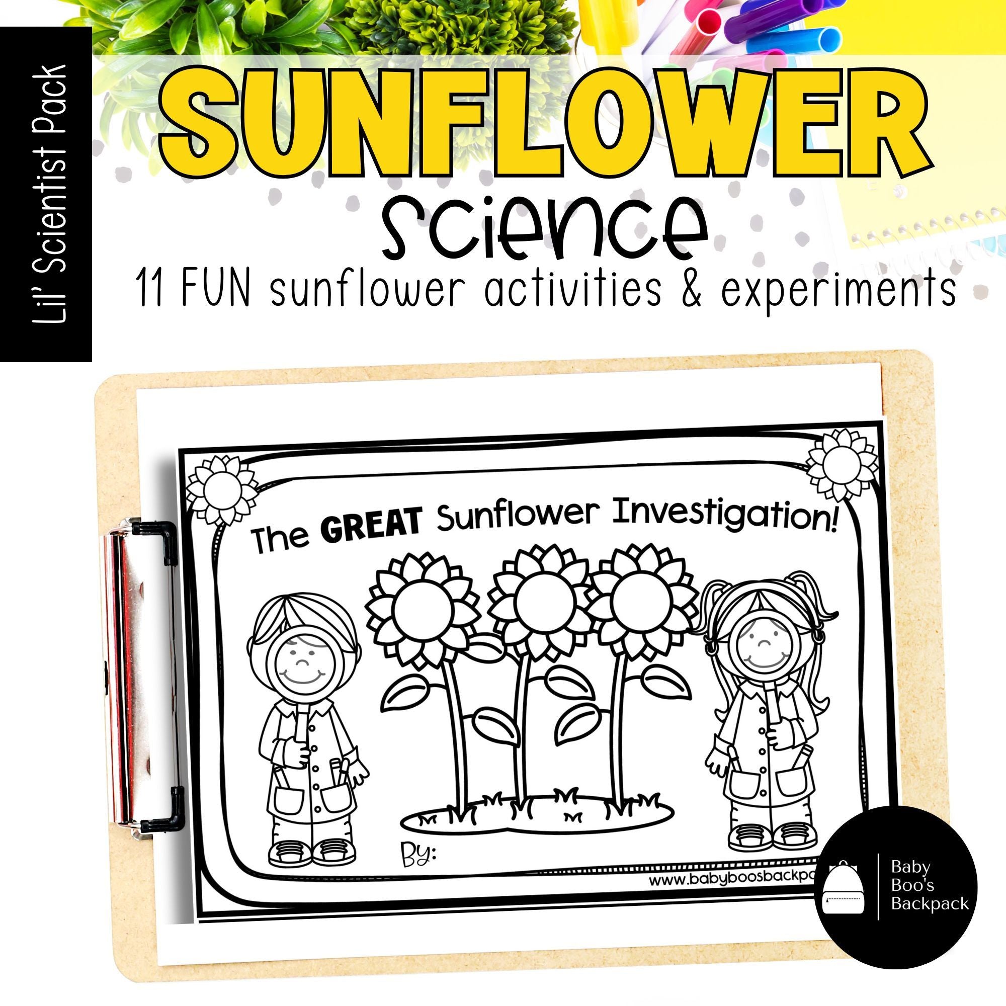 • a fun sunflower investigation booklet with matching science activities