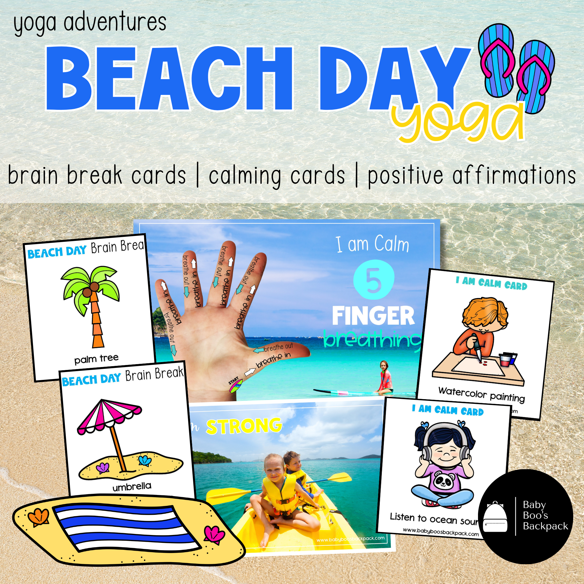 Have the ultimate BEACH DAY adventure with this Beach Day Yoga Set! Your students will LOVE all the different water sports they get to try out through simple yoga movements! Your SUMMER yoga solution!