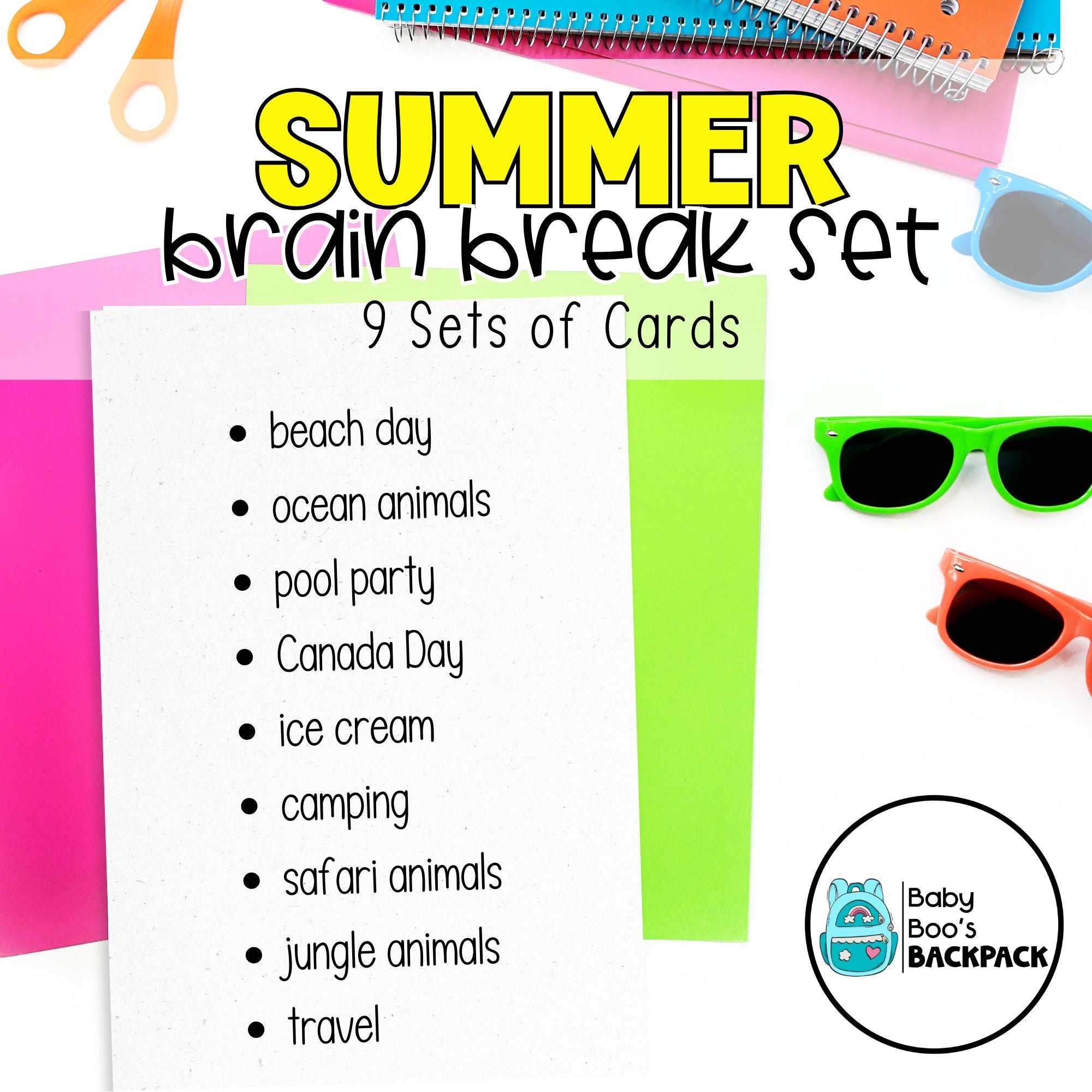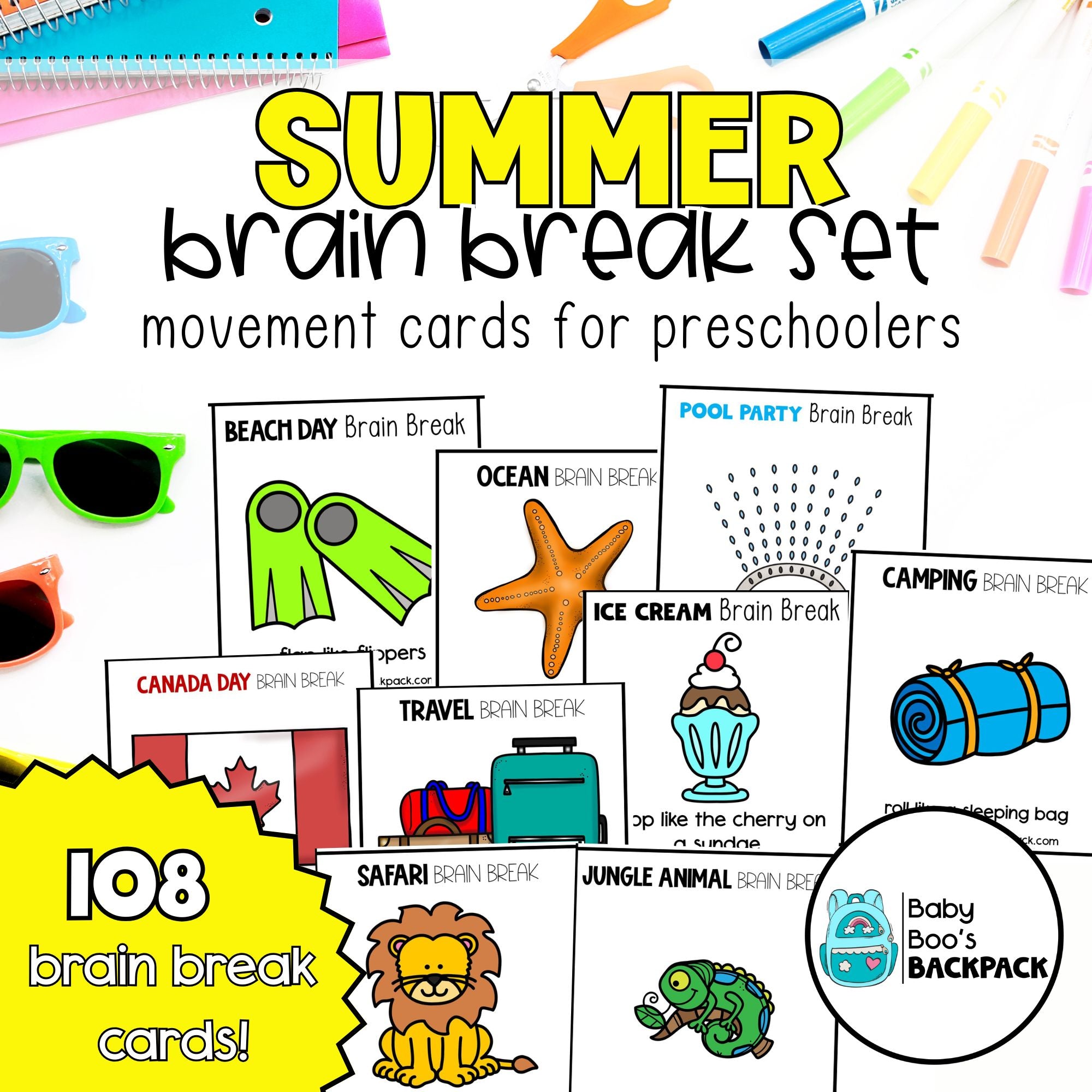 Summer Brain Break Cards | Summer Gross Motor Movement Cards | Self-Regulation