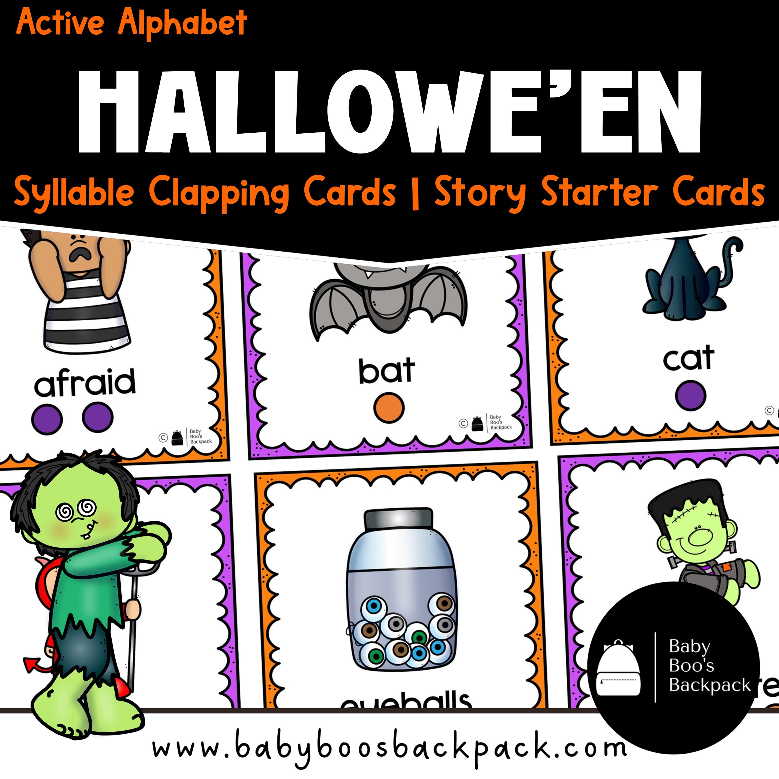-27 Hallowe'en Syllable Clapping Alphabet Cards: A to Z (color)