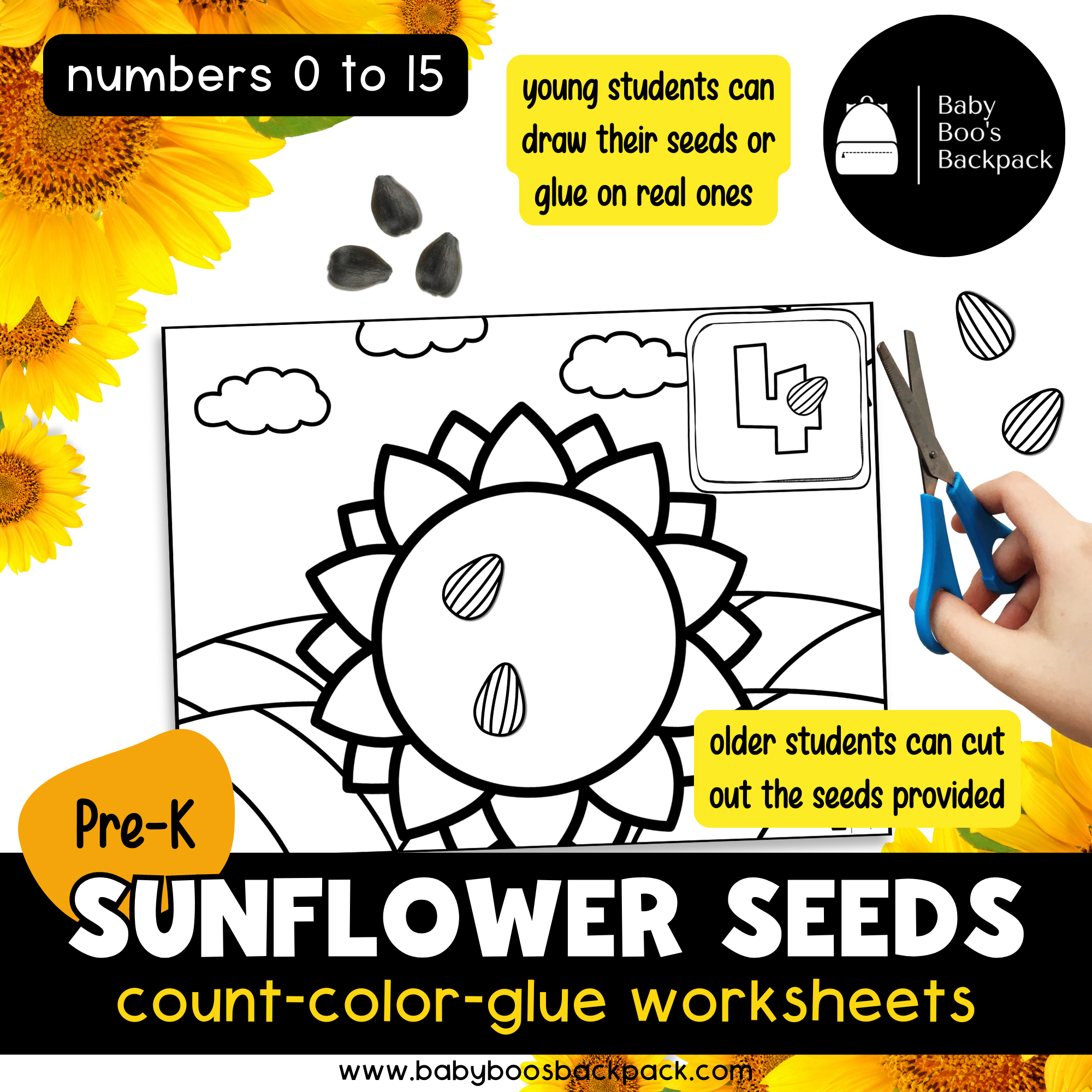 Pre-K Sunflower Seed Counting Mats & Coloring Worksheets